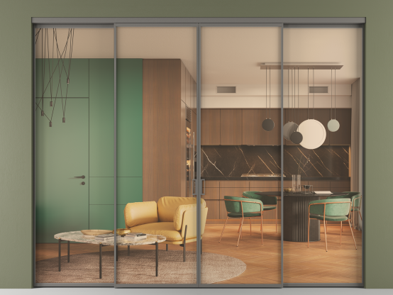Алюминиевые перегородки Formato — это стильное и функциональное решение для современных интерьеров, предназначенное для разделения и зонирования пространства внутри одного помещения. Перегородки изготавливаются под индивидуальные размеры с шагом в 1 мм, что даёт возможность подобрать оптимальное соотношение размеров и количества створок, в том числе и для нестандартных проёмов.